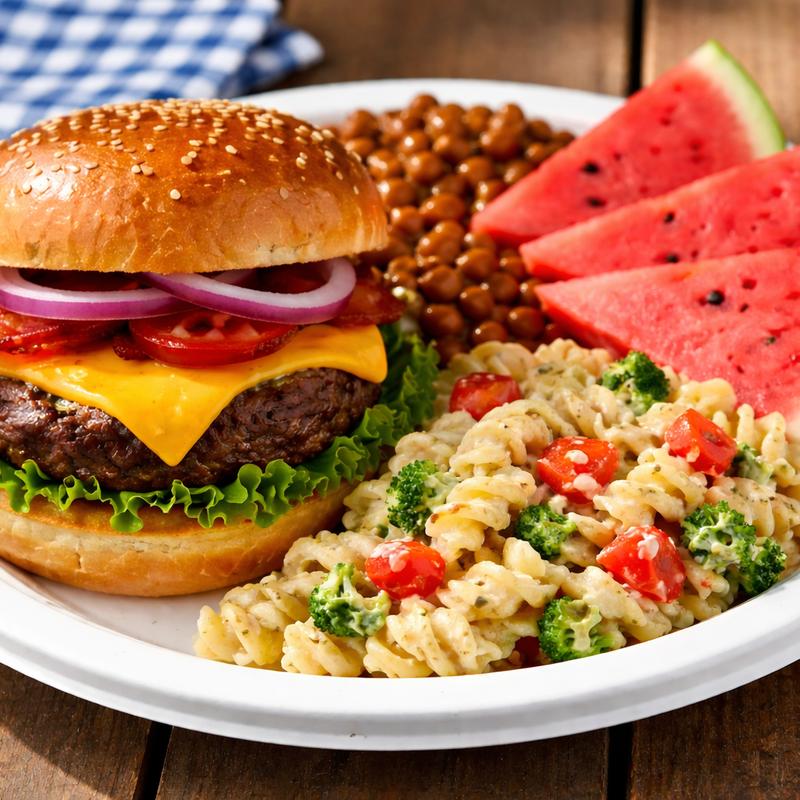 Your guests choose from a freshly grilled wagyu cheeseburger OR hot dog, with all the trimmings. Includes fresh cut watermelon, BBQ baked beans, coleslaw and pasta salad